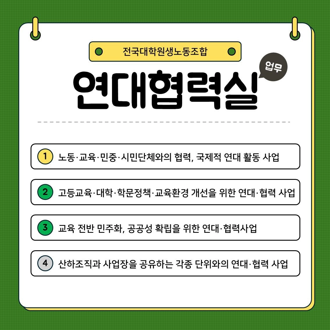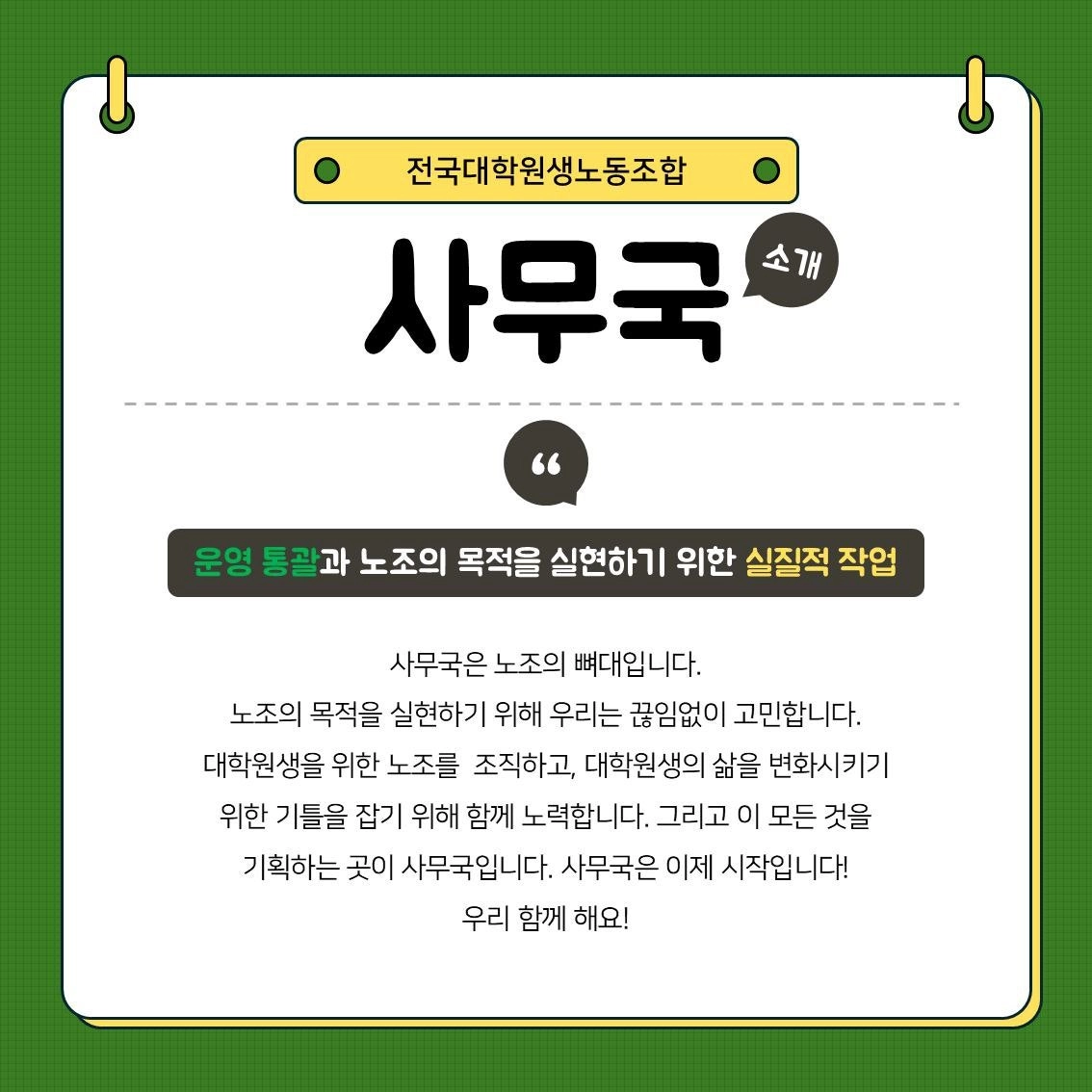 안녕하세요, 전국대학원생노동조합 제4기 사무국입니다.