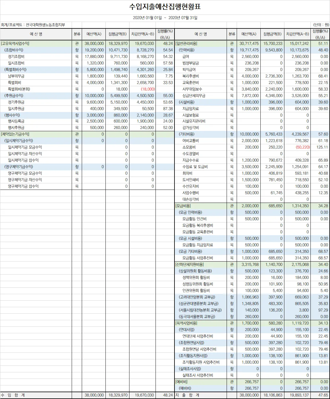 조합비를 15,000원으로 인상하면 지부 몫이 5,900원에서 10,900원으로 약 50% 증가함에 따라, 하반기 추경예산으로 3,200,000원(납부조합원 160명 기준, 9~12월 예상수입)을 추가편성할 수 있습니다.
